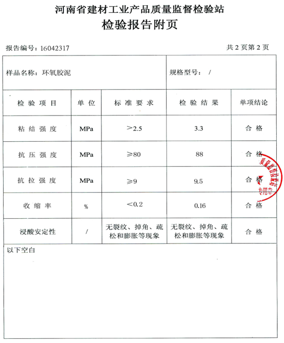 二(er)、特(te)性及用途(tu):對金(jin)屬、非金(jin)屬粘結力強,收縮率小,機械強度高,耐中 等濃度的(de)酸堿,耐候性較差。膠泥主(zhu)要(yao)用于工業設備和(he)廠房地(di)坪的(de)磚(zhuan)板防(fang)腐襯里,砂漿主(zhu)要(yao)用于工業廠房的(de)整體(ti)無縫防(fang)腐地(di)坪。
